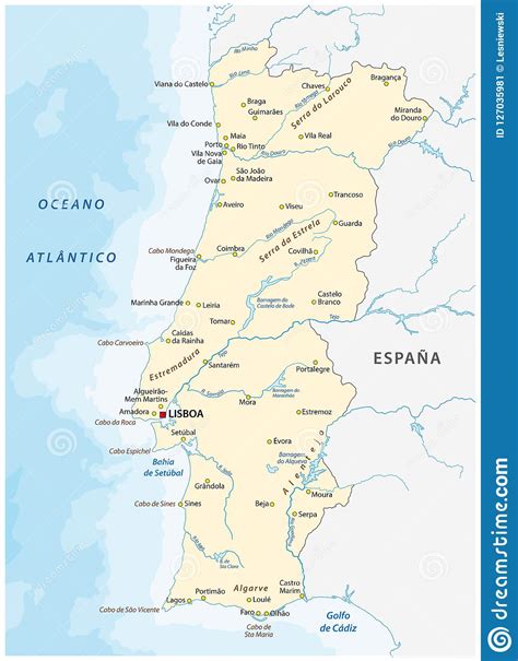 portugal map cities rivers major vector